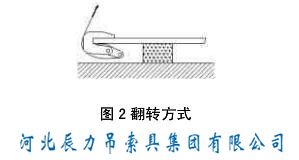 3.1 翻轉(zhuǎn)鉗額定載荷的規(guī)定是單只鉗翻轉(zhuǎn)一塊鋼板,翻轉(zhuǎn)方式如圖2。實(shí)際使用時(shí)可單只或兩只(加橫梁)吊裝一塊鋼板。