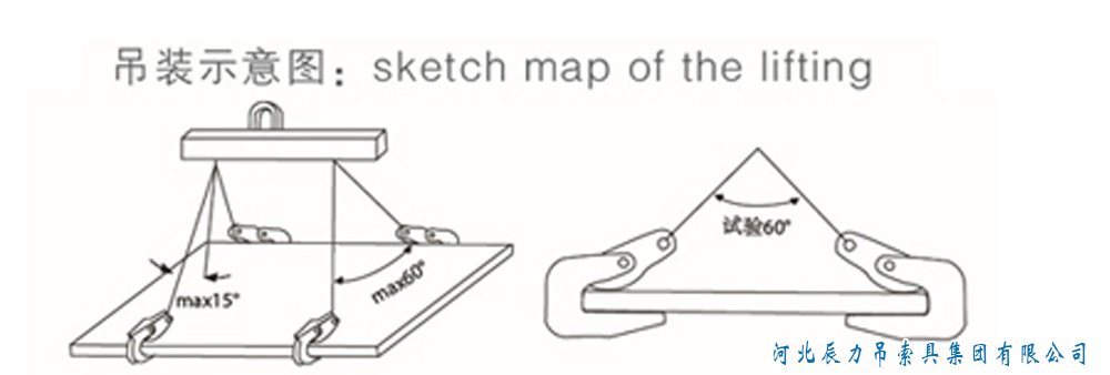 1.橫吊起重鉗的基本用法如圖所示,通過橫梁連接,組成兩對橫吊起重鉗。特別提示:橫吊起重鉗的安全工作載荷是指一對(兩只)橫吊鉗的載荷;起吊鋼板厚度是指吊鉗安全起吊鋼板的厚度范圍,起重吊鉗的實(shí)際開口度應(yīng)該大于鋼板的厚度。起吊前必須檢查鋼板的重量和板厚是否與起重鉗匹配。